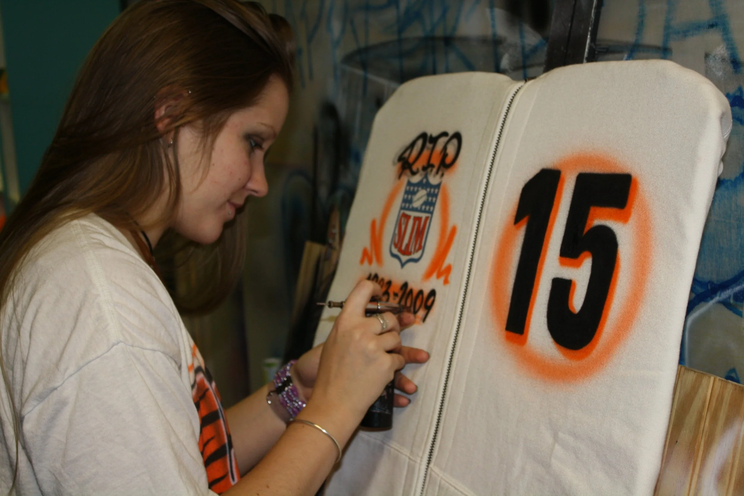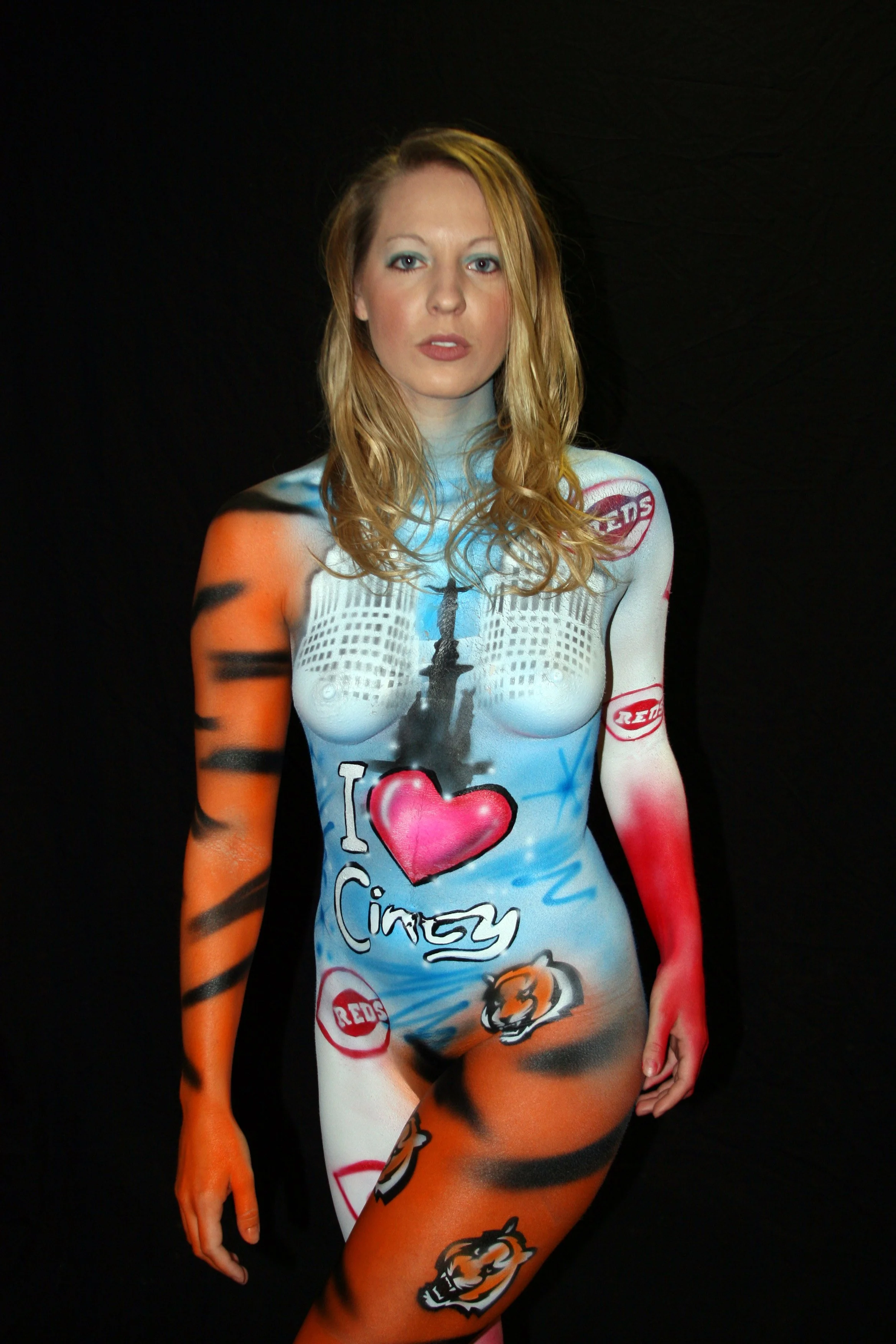 What makes us unique from all the other places you can get some Cincinnati gear is that we can custom make YOUR ideas. Whether its turning a pair of your favorite shoes into a BENGALS pair of shoes or Customizing a shirt with your favorite “Cincinnati saying” or something unique that you came up with on your own… or how about a Cincinnati themed body painting or just a Bengals or Reds face painting to stand out in the crowd of other fans at any Game watching Venue.