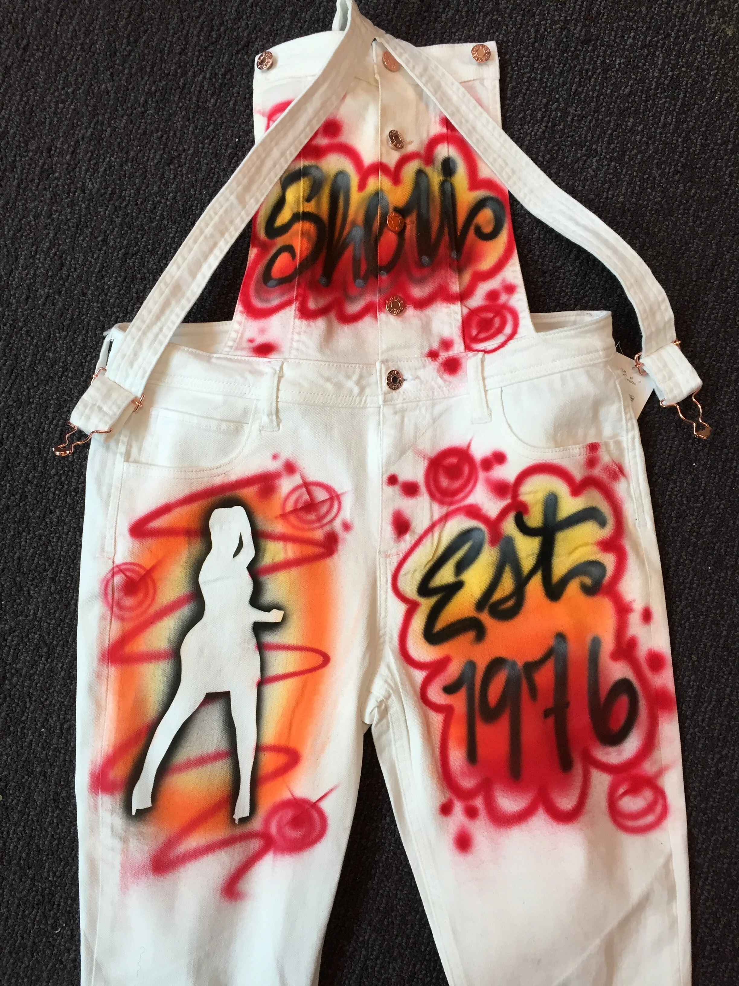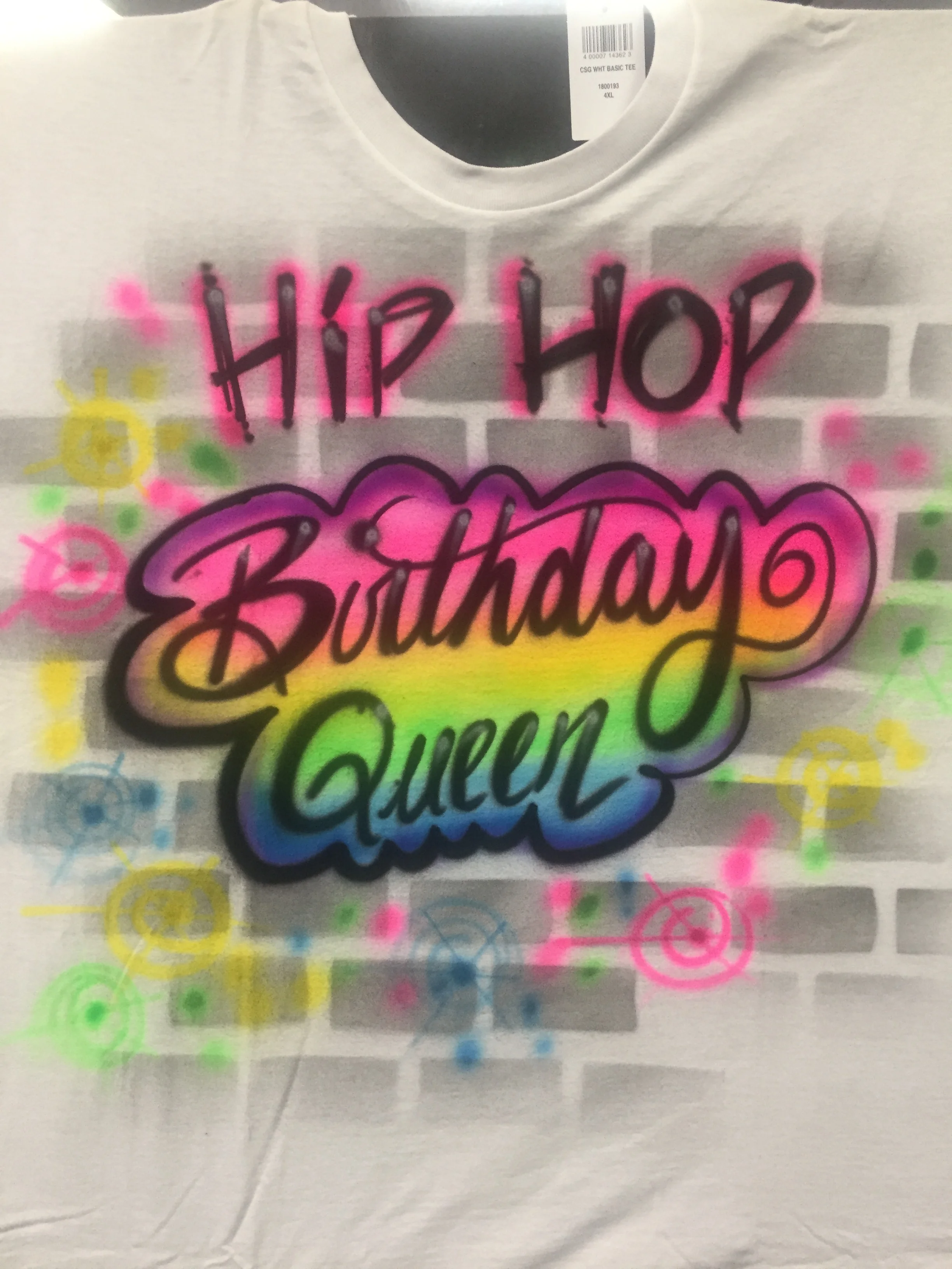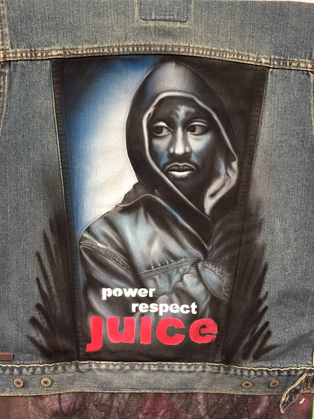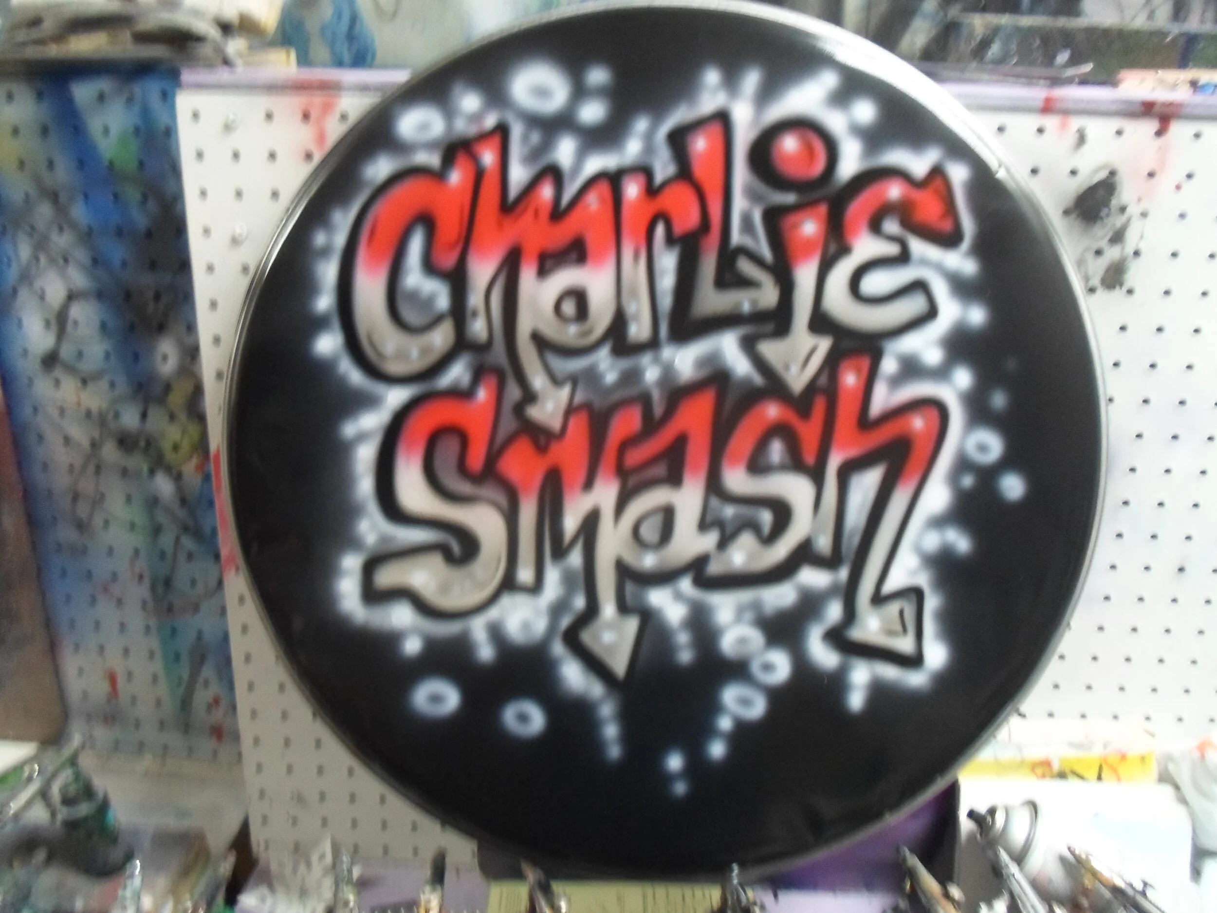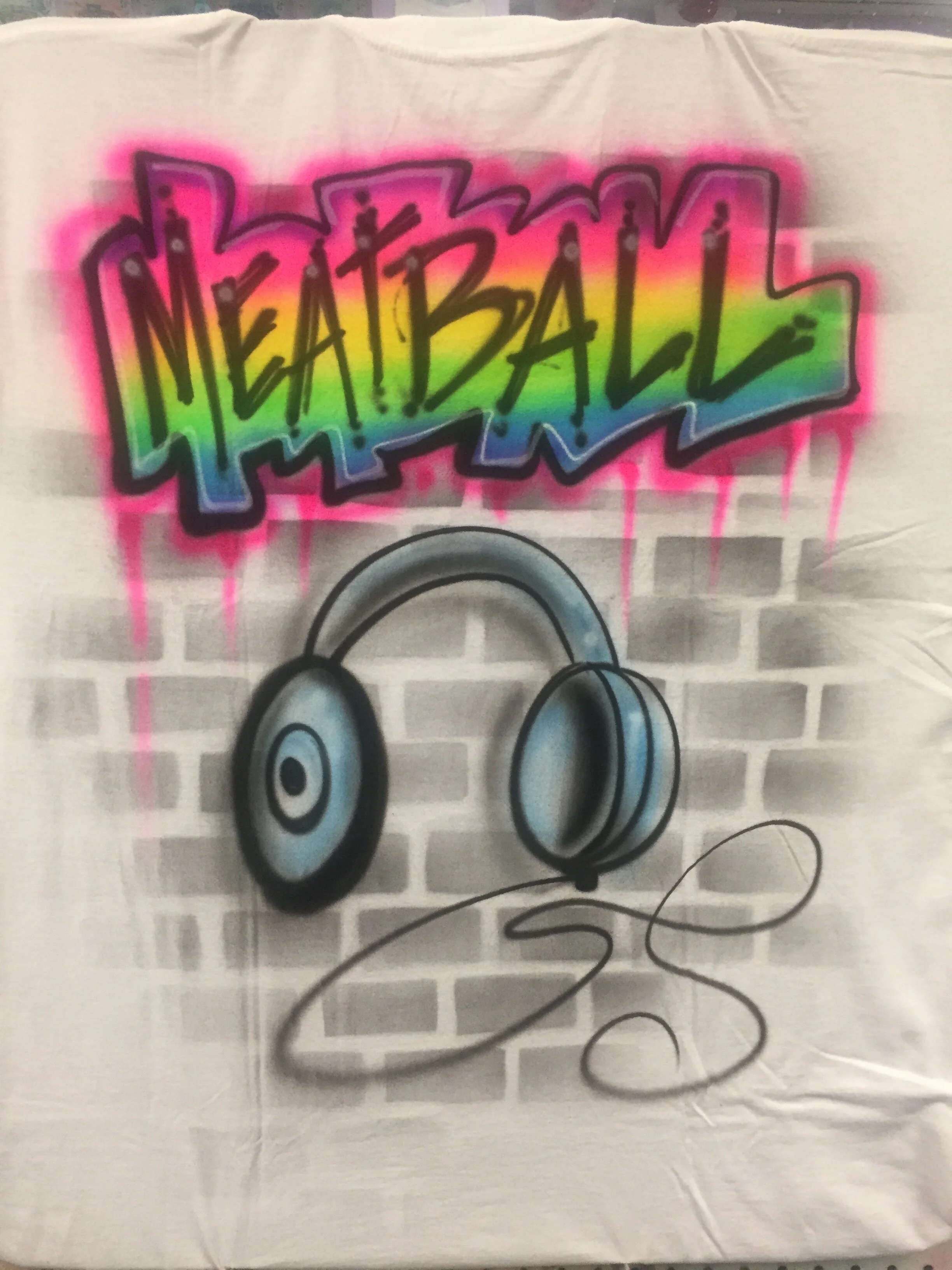 Below are some example of “custom artwork” Which pretty much means anything that is NOT one of our standard designs or an alteration to one of our existing designs or something that is not done on one of our standard items. This can range anywhere from a favorite saying, a name and number added to the back of a shirt, something airbrushed onto a pair of your jeans, something airbrushed on a pair of your shoes or something more detailed like a portrait, helmet, motorcycle tank etc…
