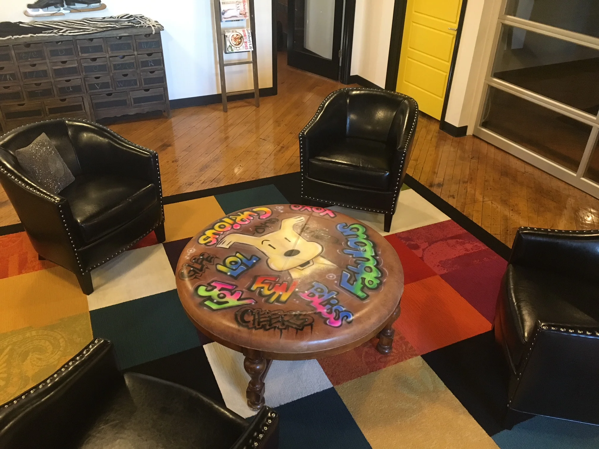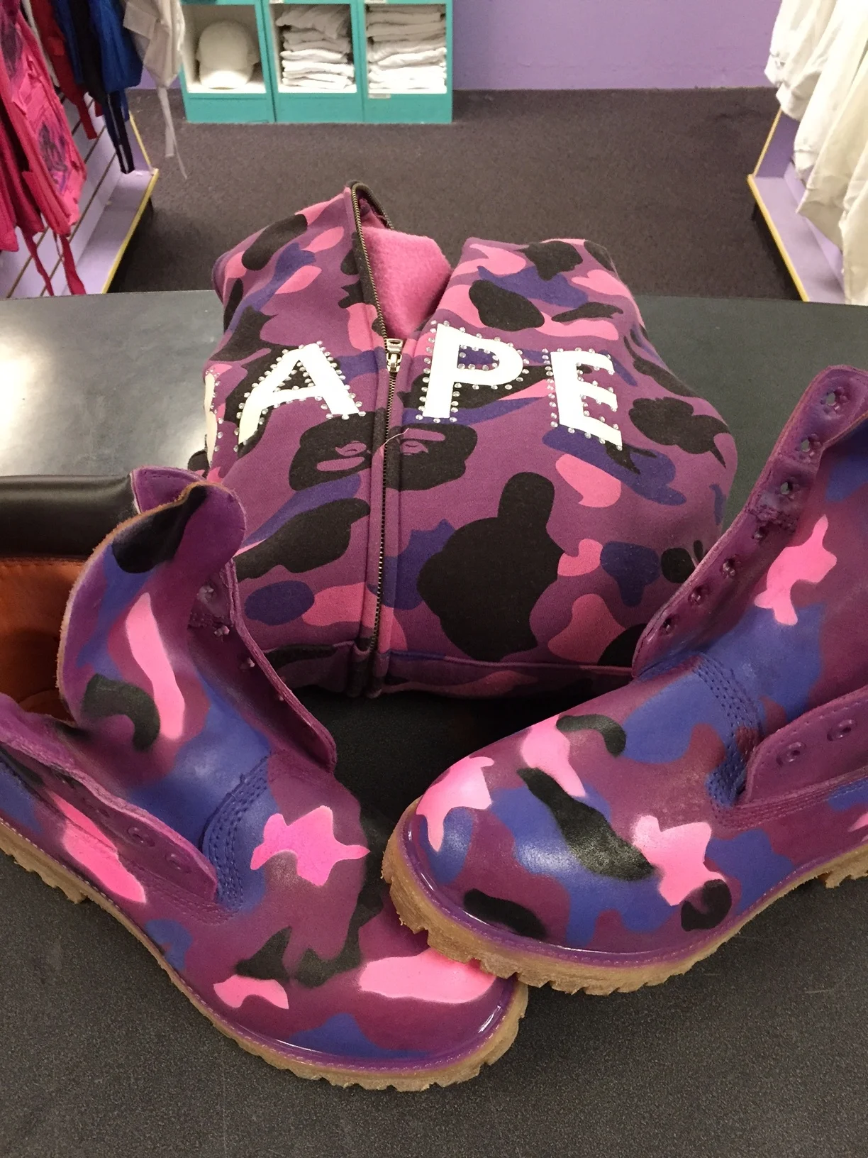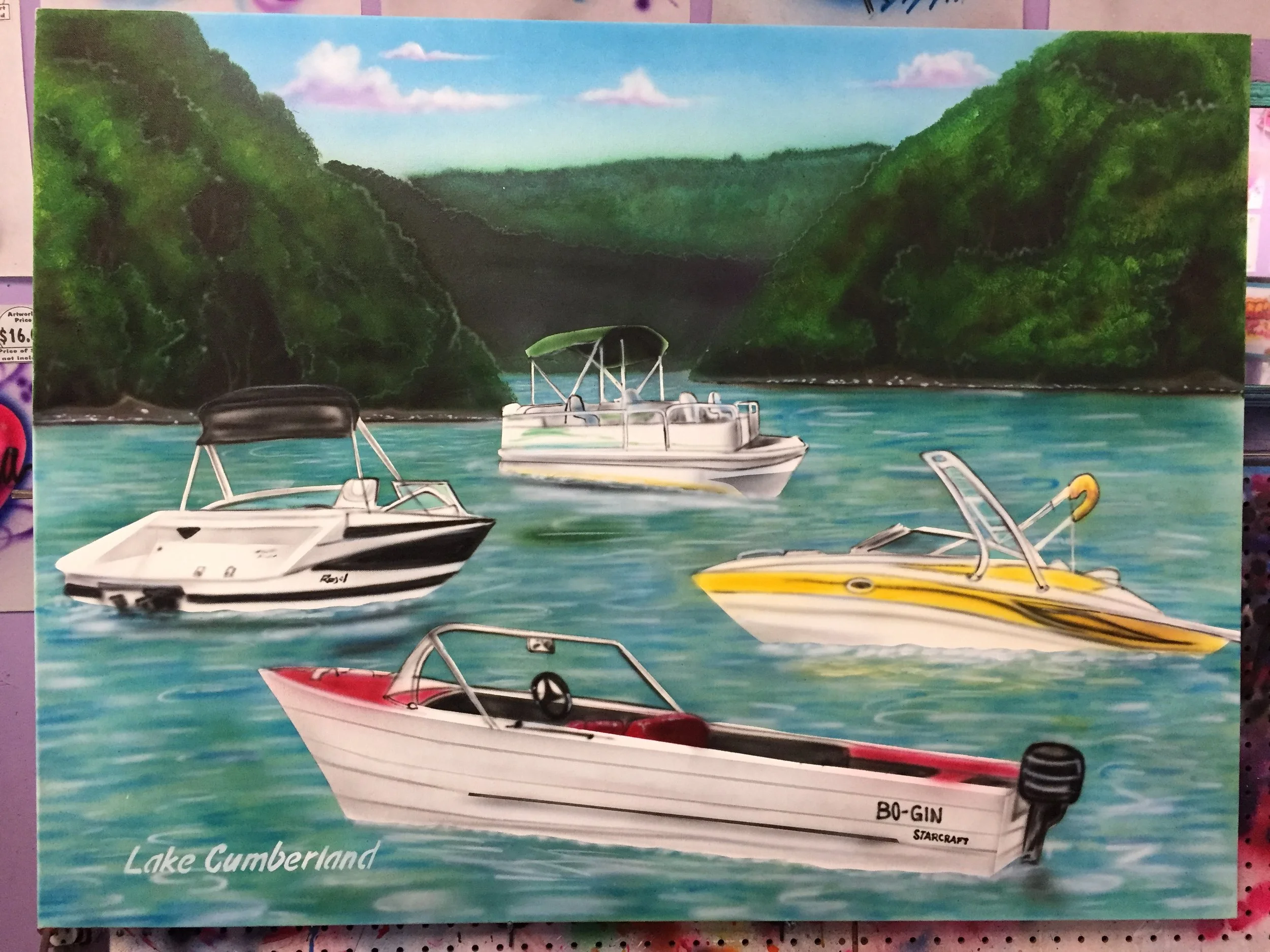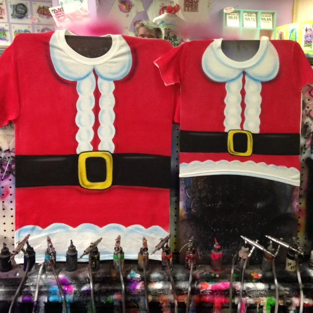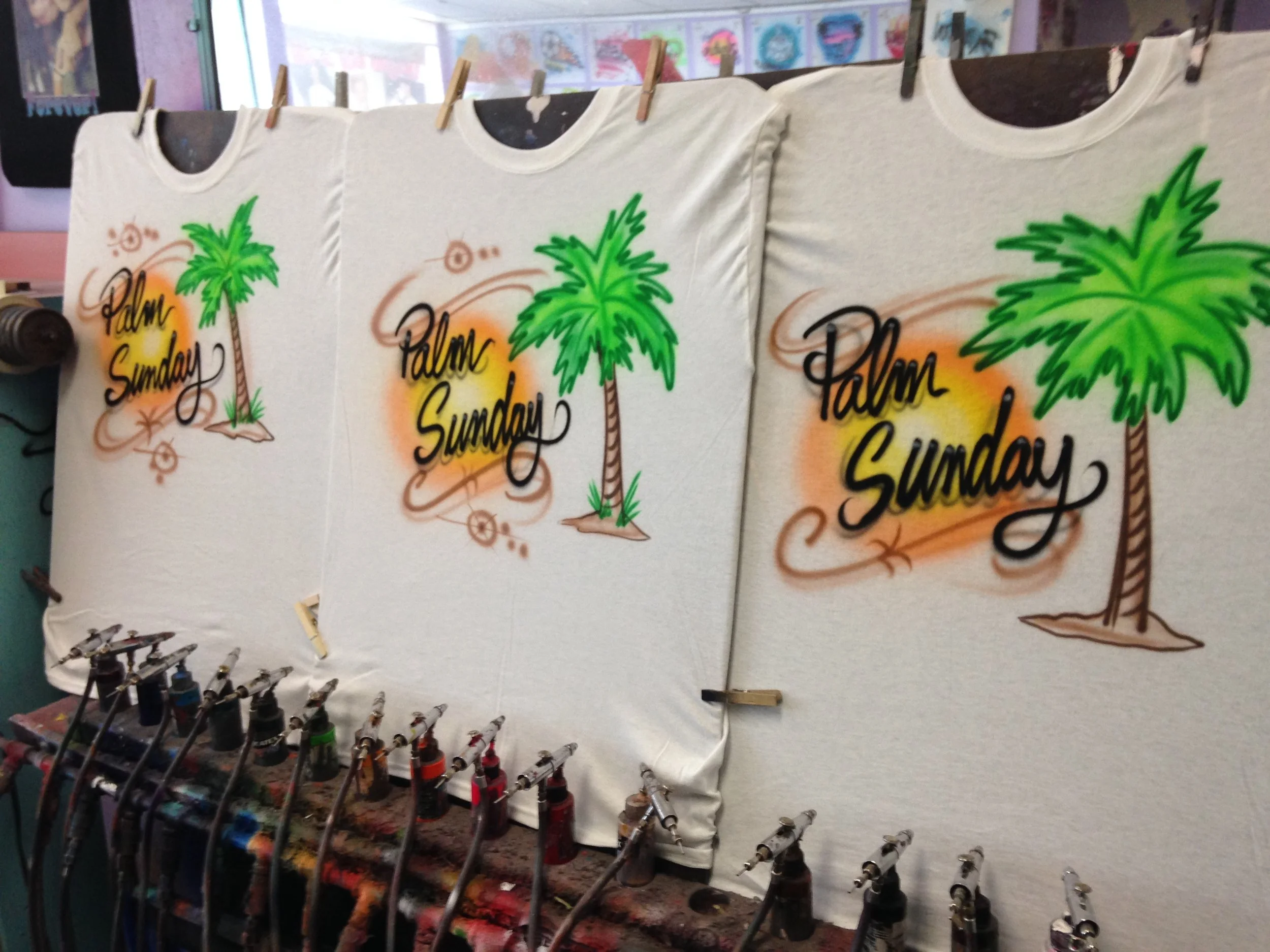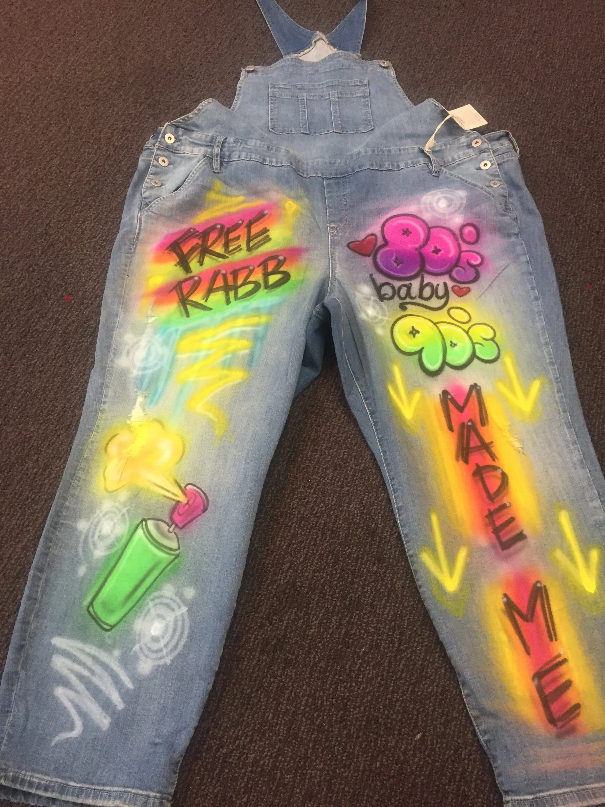 Below are some example of “custom artwork” Which pretty much means anything that is NOT one of our standard designs or an alteration to one of our existing designs or something that is not done on one of our standard items. This can range anywhere from a favorite saying, a name and number added to the back of a shirt, something airbrushed onto a pair of your jeans, something airbrushed on a pair of your shoes or something more detailed like a portrait, helmet, motorcycle tank etc…