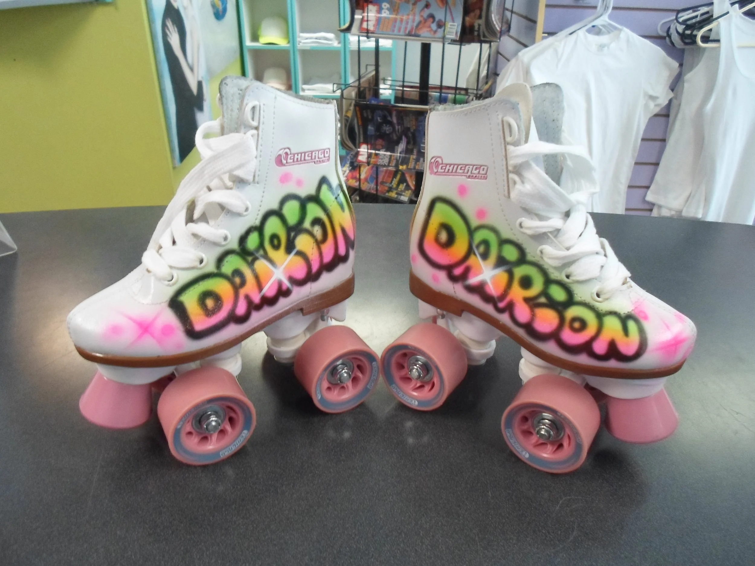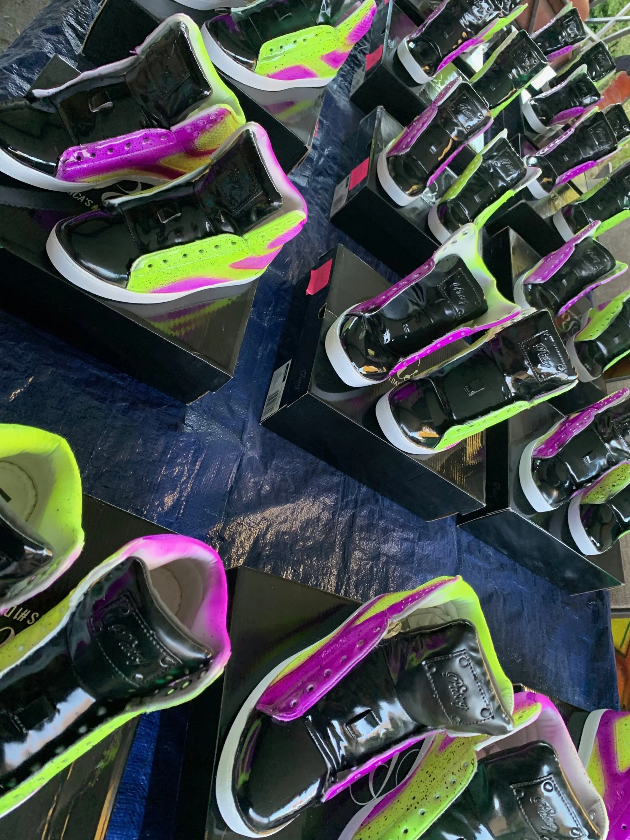 However given the popularity of “customized” footwear, nobody seems to care about the longevity of these items…lol… so…our process is as follows. Your shoes, boots, skates are painted with an acrylic based paint but then they are also clear coated with an enamel based clear. While this will help with protecting the shoes against water, there are Absolutely no guarantees since shoes are not meant to be painted. Also keep in mind that we do not recommend painting the rubber bottom(soles) of shoes as this area sees a lot more wear and tear and is more likely to rub off more quickly than any other part of the shoe.