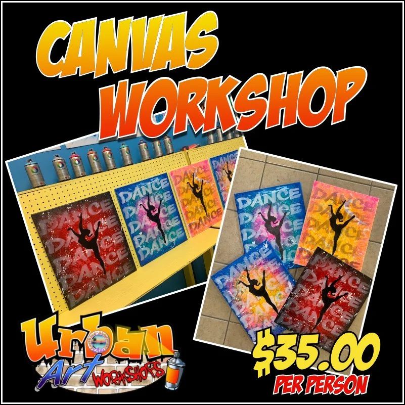 Thanks for your interest in our NEW “Urban Art Workshops. These workshops are designed for kids and adults. They are the perfect activity for families, birthdays, youth organizations/sports teams, ladies night, corporate team building and pretty much anyone who wants to “create art”